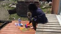 尚、遊び場所として、我が家はお庭のウッドデッキで遊ばせてます。そこは娘のお気に入りの遊び場所♡